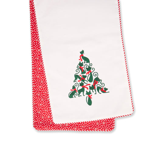 Cat Christmas Tree Design Table Runner