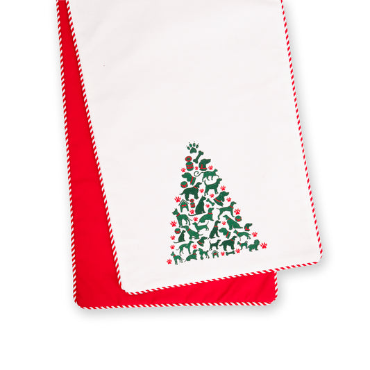 Dog and Cat Christmas Tree Design Table Runner