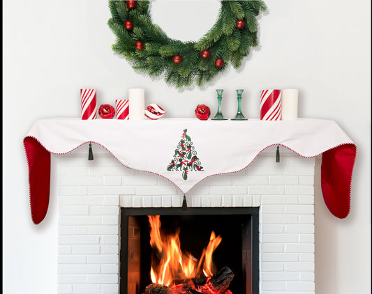 Our embroidered mantel scarves are an easy way to decorate! 96" length makes them perfect for most mantels.